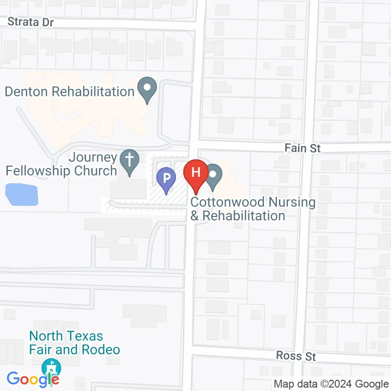 Cottonwood Nursing & Rehabilitation is a dedicated nursing home that provides comprehensive care to its residents in a compassionate environment. The facility offers a variety of services, including skilled nursing care, short-term rehabilitation, long-term care, memory care, and therapy services encompassing physical, occupational, and speech therapy. Cottonwood's team of experienced healthcare professionals focuses on each resident’s individual needs, promoting optimal recovery and enhancing quality of life.Owned by a reputable healthcare organization, Cottonwood Nursing & Rehabilitation has been serving the Denton community for several years and has built a strong reputation for its patient-centered approach. It is accredited by the appropriate health authorities, underscoring its commitment to meeting high standards of care. The facility has received positive reviews from families and residents, highlighting its welcoming atmosphere and attentive staff.Cottonwood is historically significant in the community as a trusted provider of essential healthcare services. It fosters long-lasting relationships with families and ensures a safe and supportive environment for all its residents.